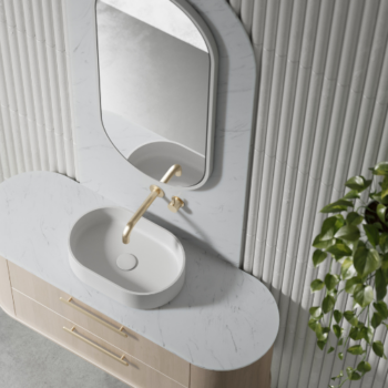 The Lune mirror is a stunning piece to partner with the Lune basins and furniture collection. The soft curves and clean lines are at home in any modern bathroom.